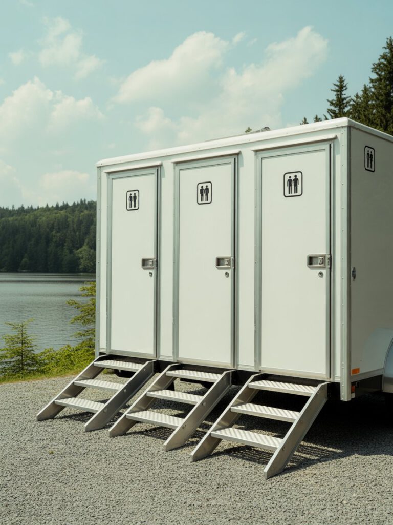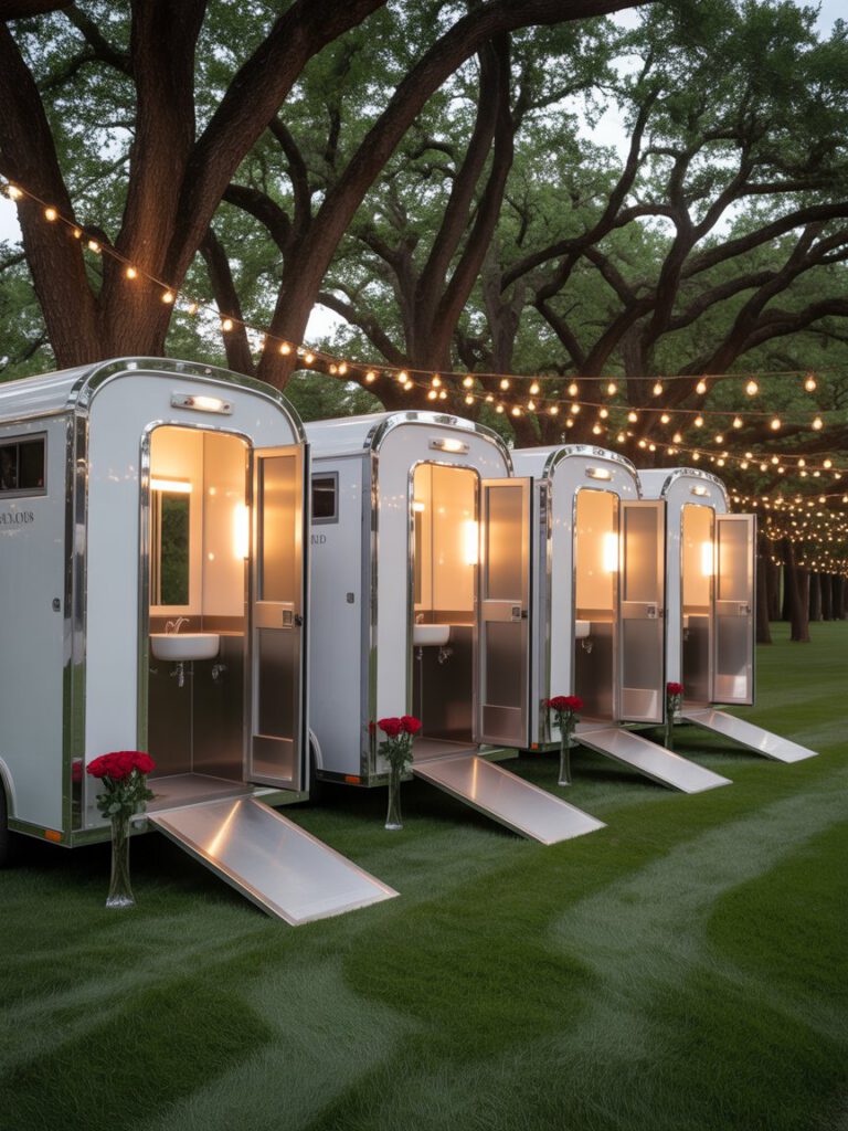 | 3- to 5-Station Trailer | Multiple private stalls and urinals (men’s/women’s sections), full vanities, ambient sound systems. | Medium Weddings/Galas, corporate functions, VIP areas at mid-sized festivals (accommodates ~150-400 guests). |